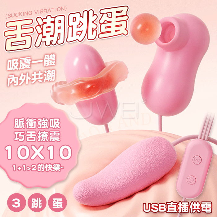 舌潮.10x10頻脈衝吮吸 巧舌撩震 內外共潮 USB直插情趣跳蛋【三跳款】