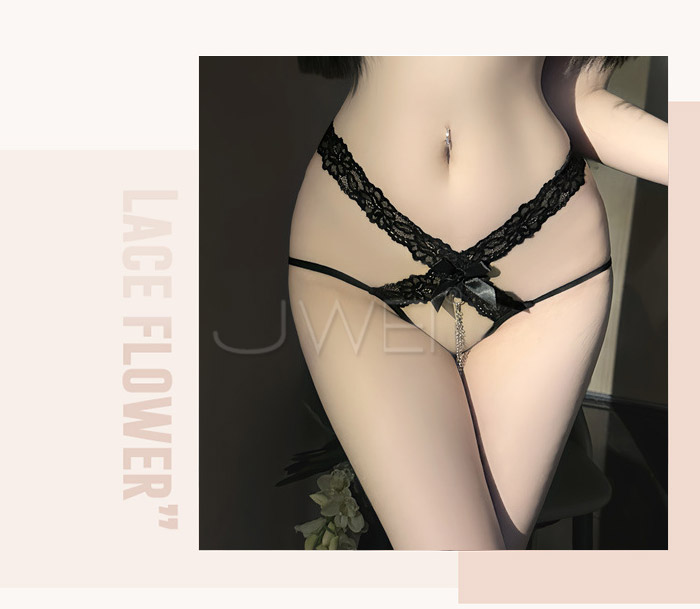 愛鏈之夜.圓環鏈條勒臀純欲蕾絲花邊開檔內褲【白】
