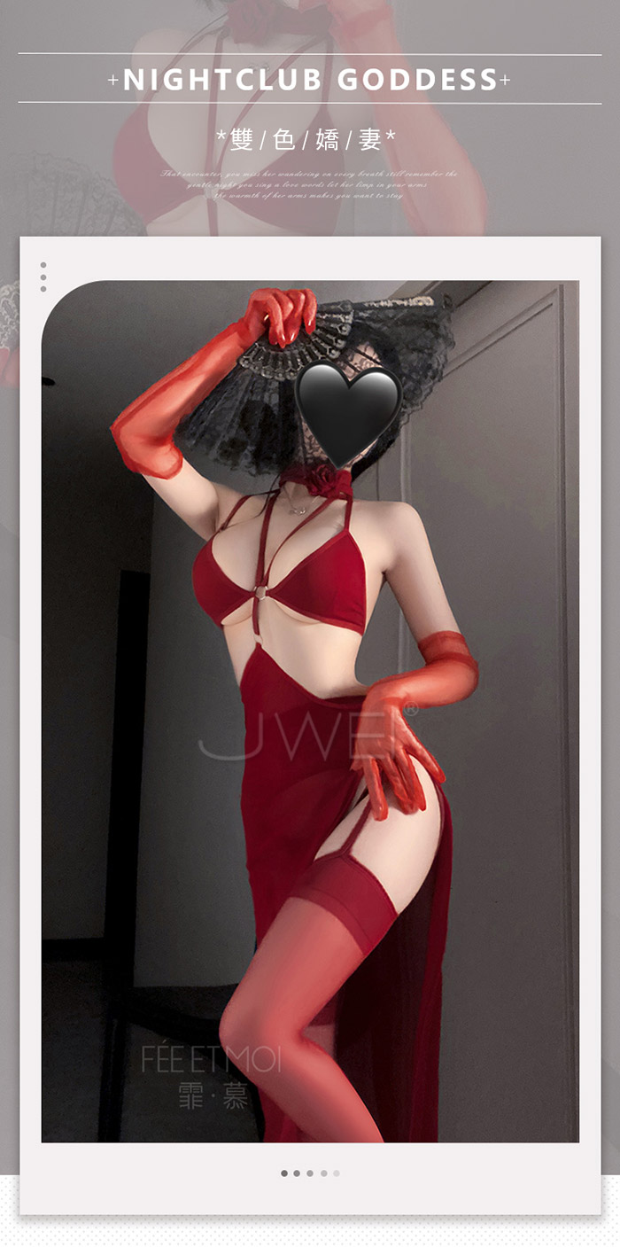 ►您現在的位置:首頁>雙色嬌妻.迷迭花樣掛脖頸環美背側高衩網紗睡裙-紅【頸環+連身裙+內褲】