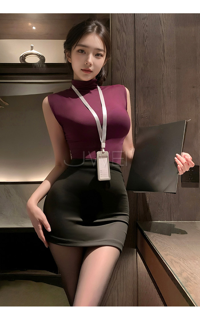 ►您現在的位置:首頁>情秘演繹.胸部可剪緊身包臀禁慾系OL秘書套裝-紫+黑【上衣+工牌+包臀裙+內褲】