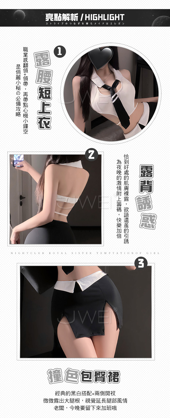 OL領域.挖空露腰美背撞色雙開衩包臀裙OL小秘制服套裝【上衣+領帶+包臀裙+內褲】