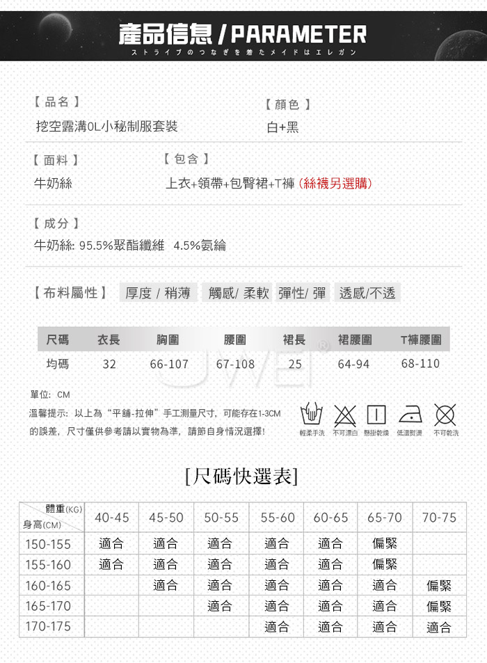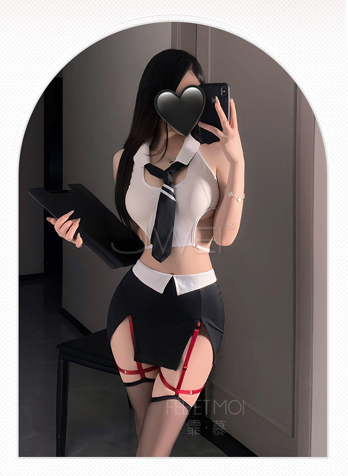 ►您現在的位置:首頁>OL領域.挖空露腰美背撞色雙開衩包臀裙OL小秘制服套裝【上衣+領帶+包臀裙+內褲】