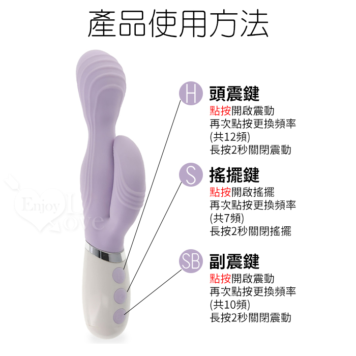 ►您現在的位置:首頁>日本NPG.やわらかバイブ 肌感触 12頻頭震+7搖擺+10副震多功能柔和按摩棒-紫