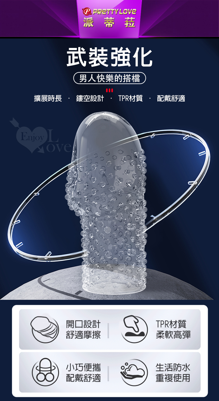 派蒂菈 ‧ HUEL 休爾 凹凸直線螺紋刺激/隱身/持久/武裝強化老二造型套 - 頭部出精口設計