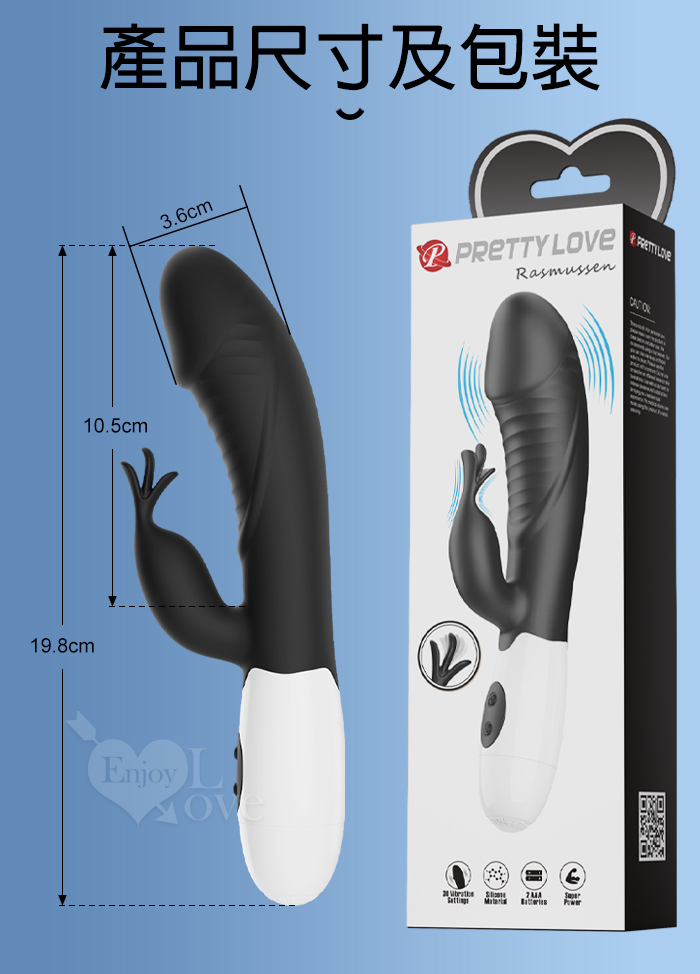 PRETTY LOVE 派蒂菈 ‧ 飛天鵝 雙重強震 內外同享30頻老二頭按摩棒-黝黑 Rasmussen
