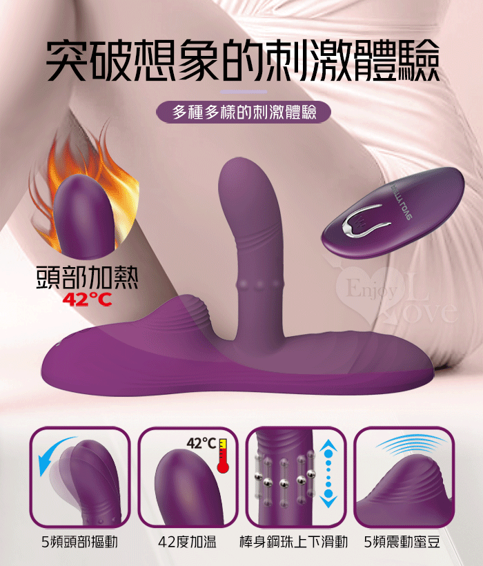 派蒂菈 ‧ Loursen 勞爾森 4蠕動+7震動 瘋狂蠕動震感內外夾擊入體按摩棒-深紫