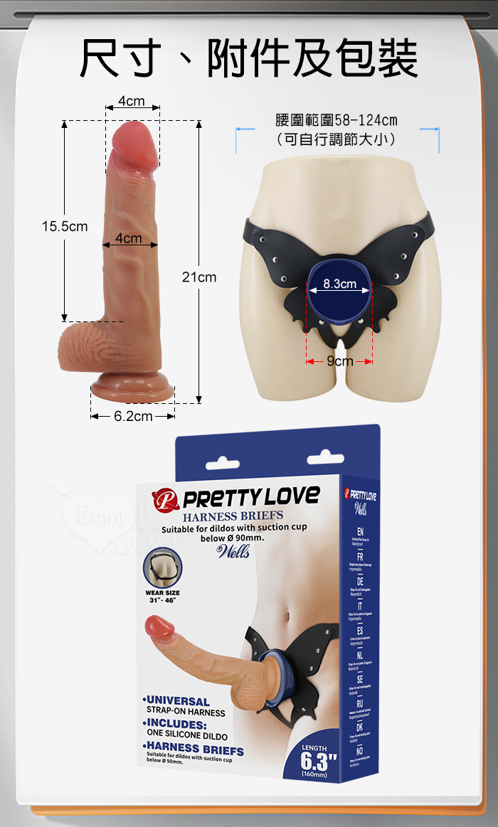 PRETTY LOVE 派蒂菈 ‧ 威爾斯 Nells 矽膠逼真勇猛老二棒+強力吸附穿戴褲﹝可拆分通用﹞