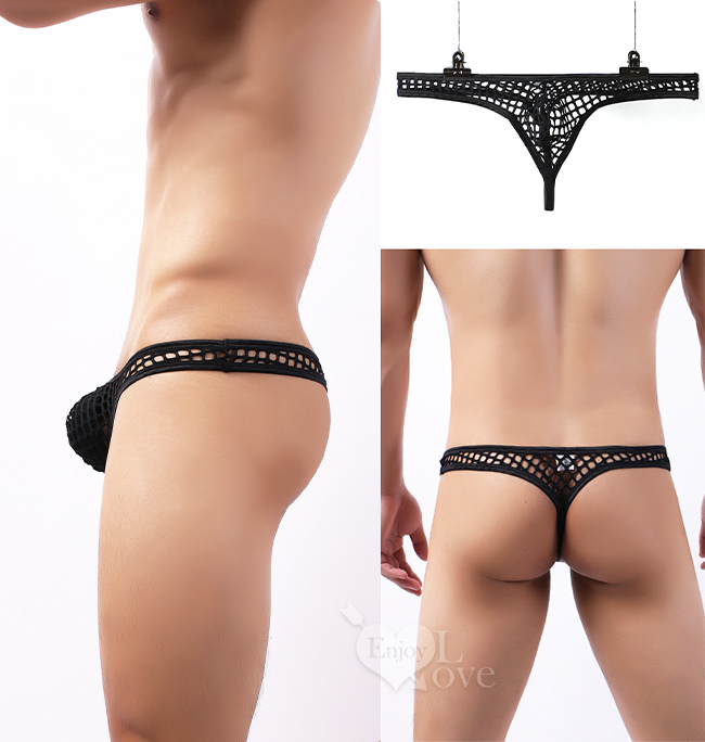 | 《 Enjoy Love 》性感半透大網孔男士丁字褲 - 黑﹝M﹞