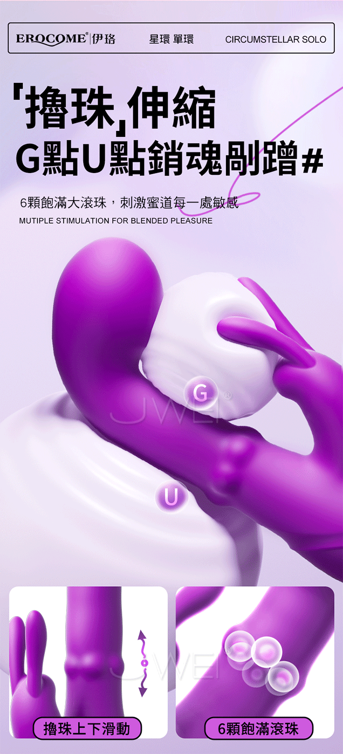 | EROCOME伊珞.CIRCUMSTELLAR Solo 星環座 9x9頻摳震擼珠伸縮舔震 兔耳按摩棒【單環擼珠】