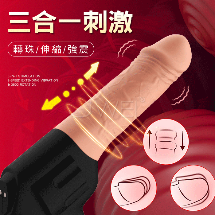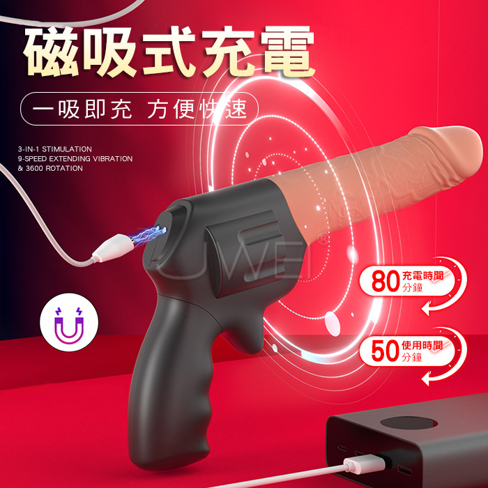 | 仿真手槍.9種頻率 伸縮+轉珠+震動 三合一逼真陽具按摩棒