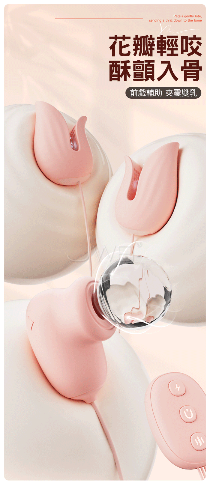 花瓣輕咬 酥顫入骨,前戲輔助 夾震雙乳,鬱金香花瓣 造型儀式感
