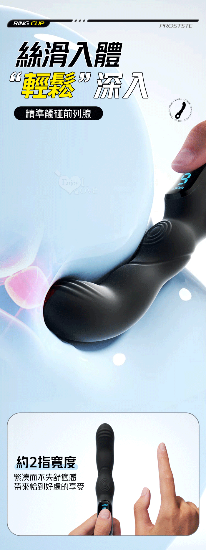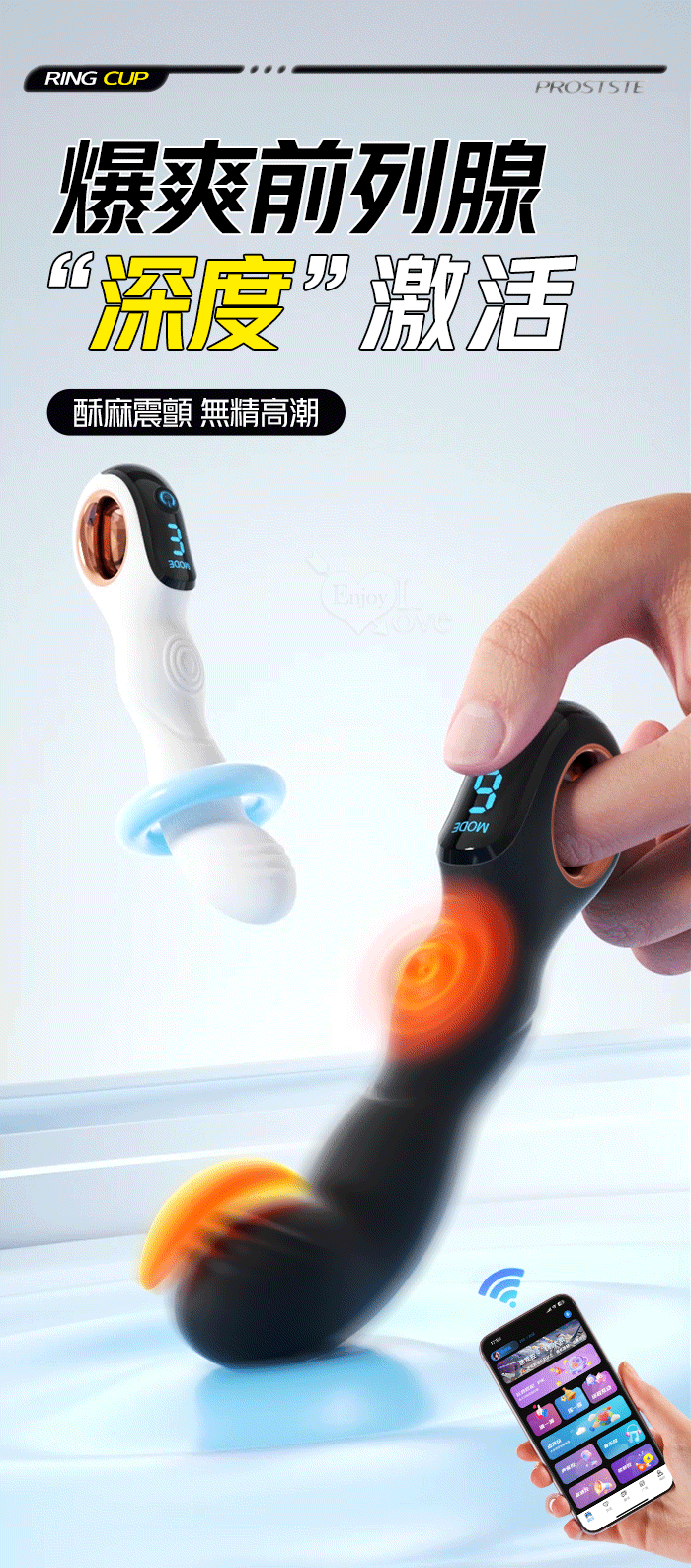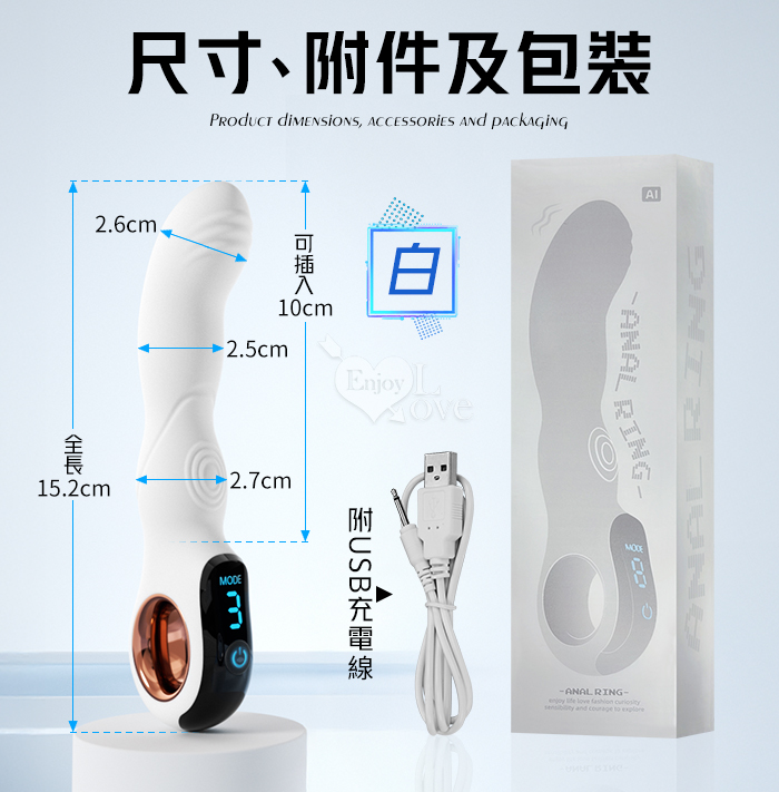 | ROSELEX 指環前列腺~深度激活後庭按摩器-液晶視屏顯示10頻震動/可手機APP遙控﹝具兩種操控模式﹞白