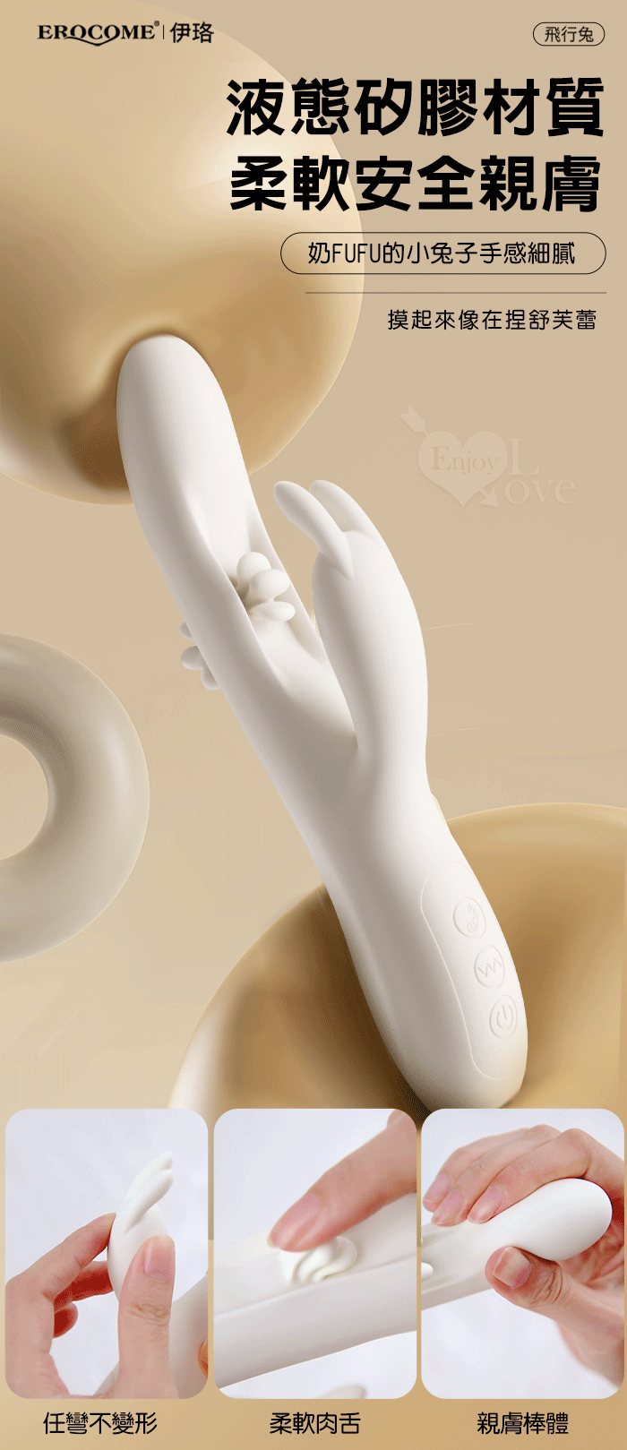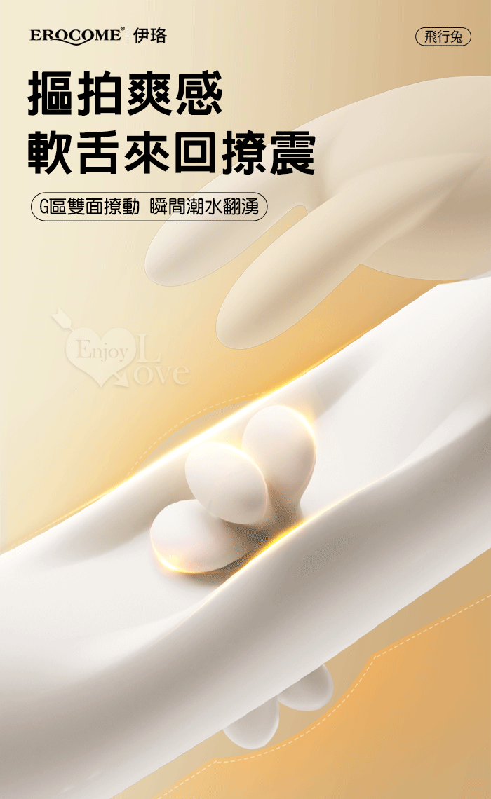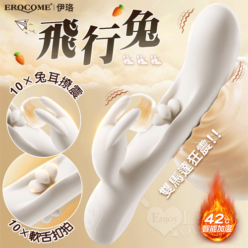| EROCOME伊珞.Flying Bunny 飛行兔 10x10頻飛輪軟舌兔耳震動拍打雙震加溫3合1按摩棒