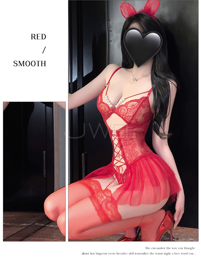 ►您現在的位置:首頁>串珠織夢.深V珍珠飾胸蕾絲繫帶花邊裙擺開襠連體衣【酒紅】