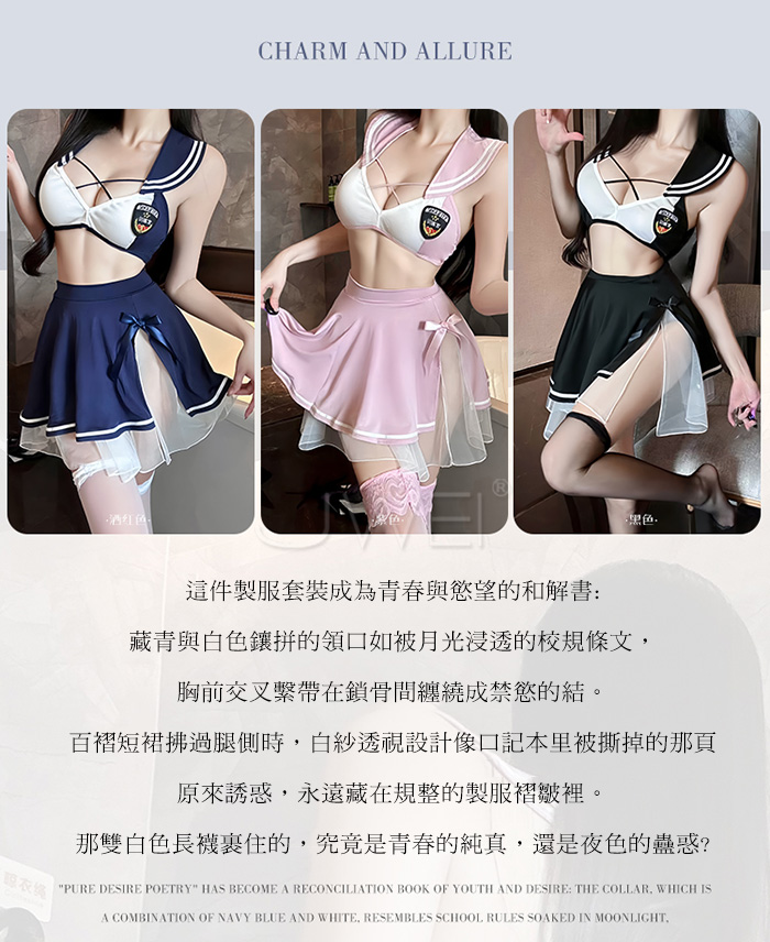 ►您現在的位置:首頁>甜心刑警.胸前交叉繫帶清純百褶透視白紗COS制服套裝【上衣+短裙-粉+白】