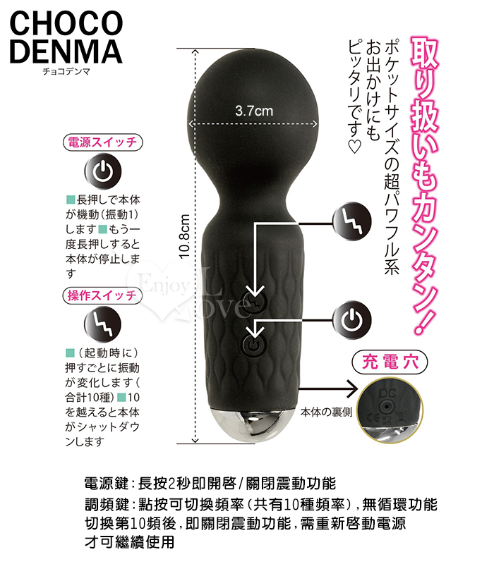 日本NPG.CHOCO DENMA 炸裂AV棒 3段震速x7頻震動 迷你按摩棒-黑