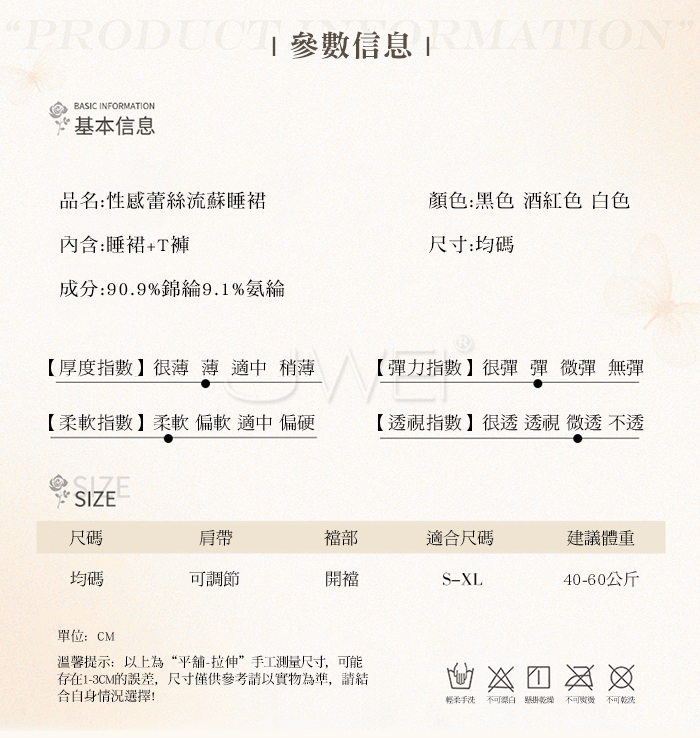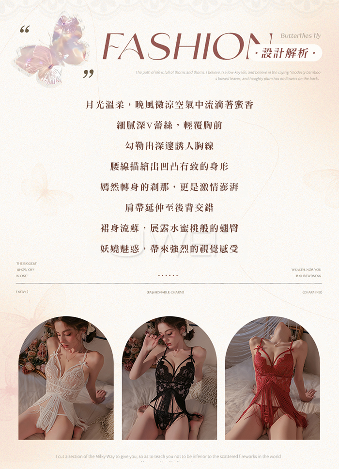 ►您現在的位置:首頁>輕舞搖曳.網眼蕾絲深V誘惑流蘇裙襬露臀睡裙【睡裙+T褲】黑色