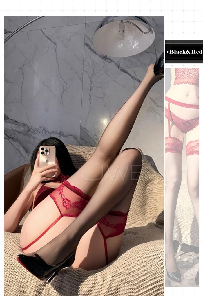 | 魂牽夢縈.御姐風蕾絲吊帶一體絲襪【黑色】