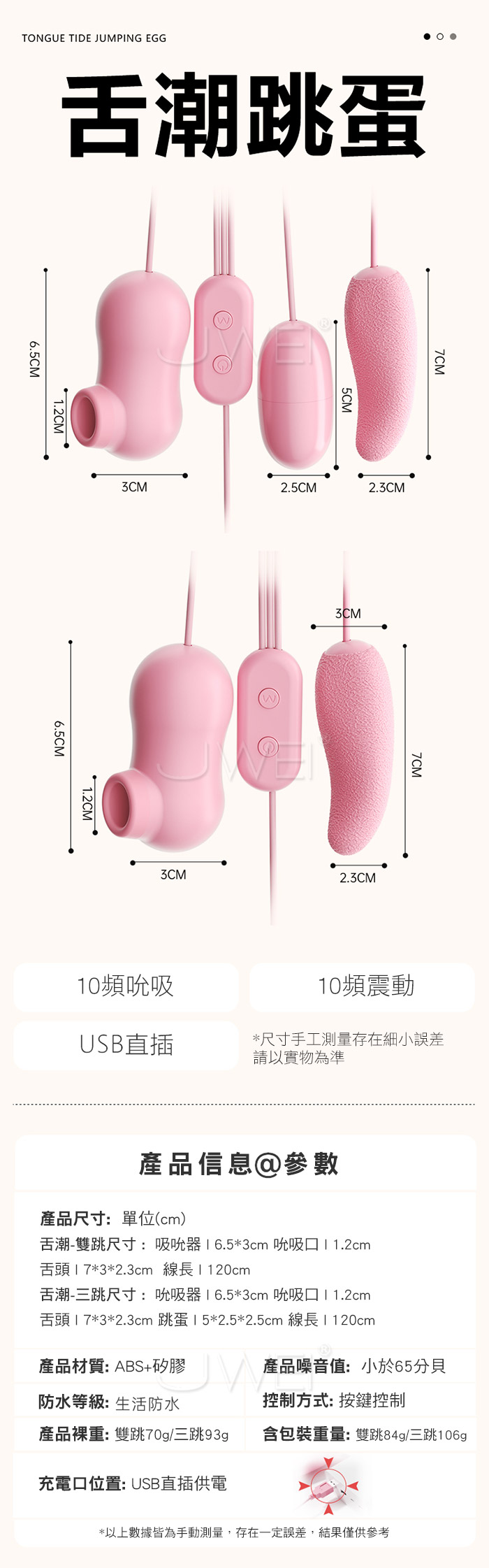 ■功能: 10頻吮吸、10頻強震、USB直插