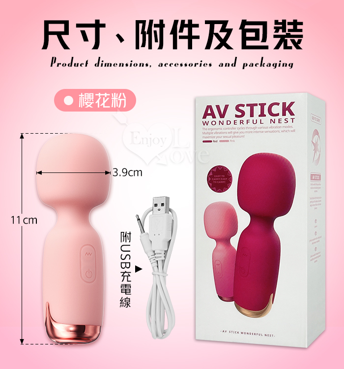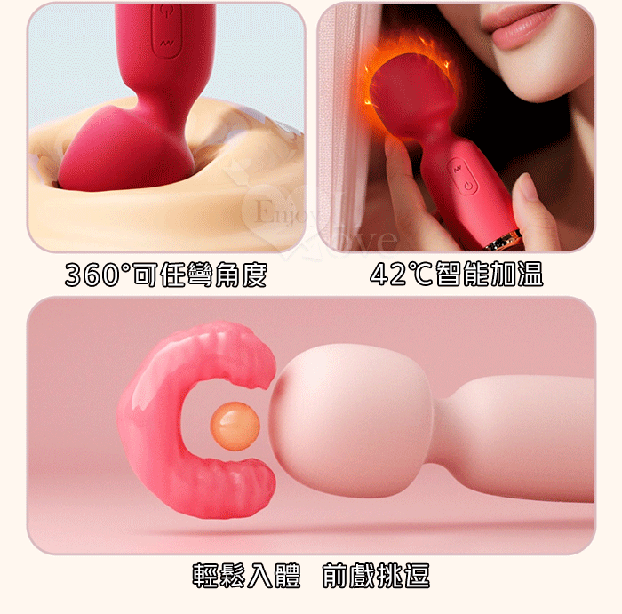 ROSELEX 勞樂斯 ‧ NEW全新升級~妙巢爆震AV棒 10調頻/智能加溫/小巧随身360度彎曲AV棒﹝櫻花粉﹞