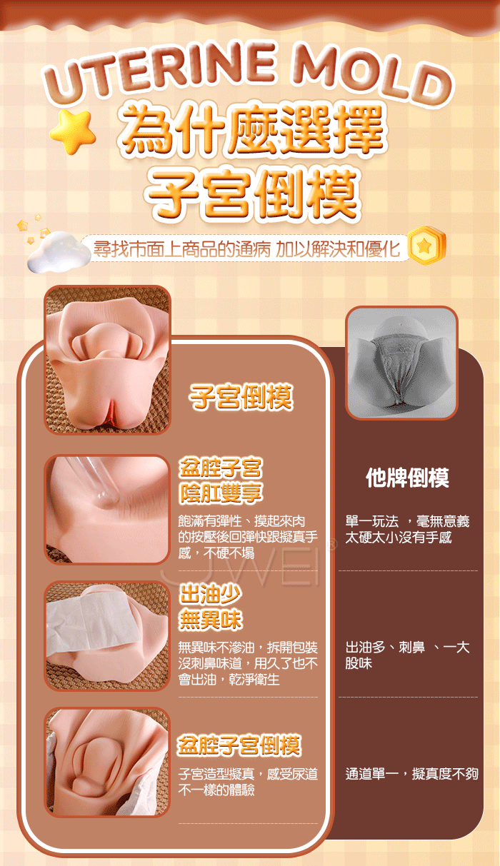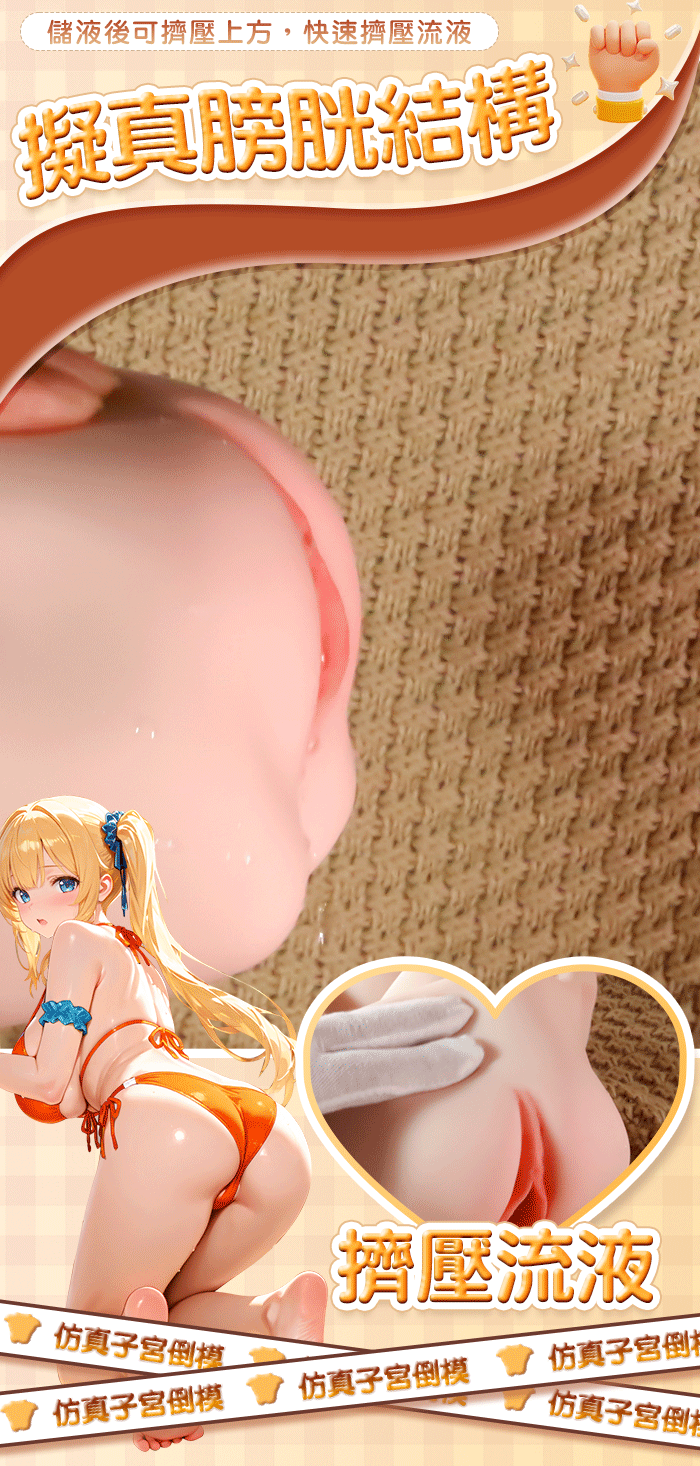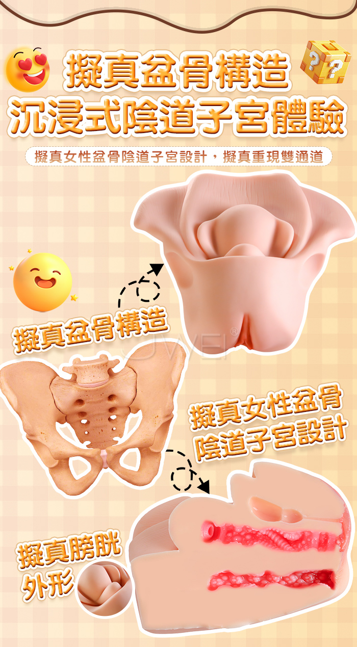 擬真雙通道,子宮頸口造型擬真,膀胱結構感受擠壓尿道流液,不一樣的體驗!