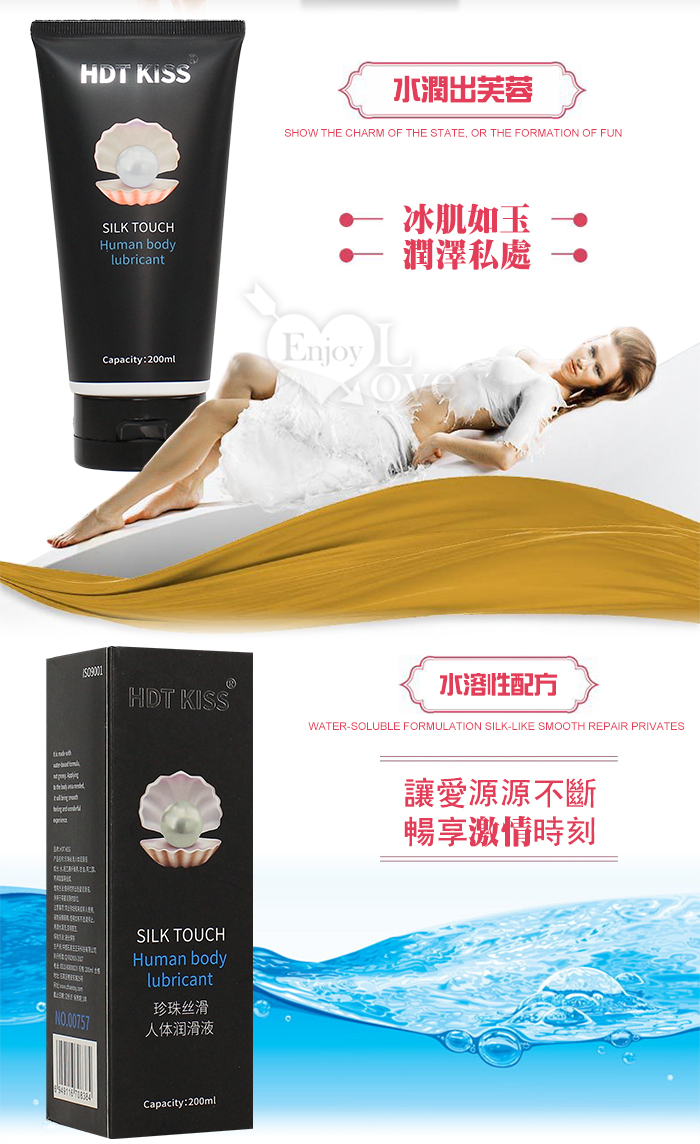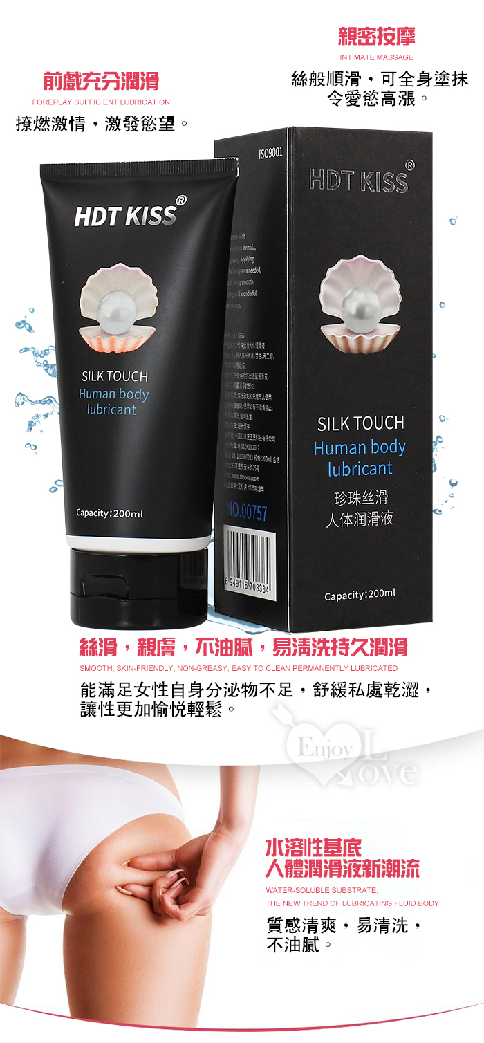 HOT KLSS 熱吻 ‧ 珍珠絲滑 自然無色人體水性潤滑液 200ml+送尖嘴