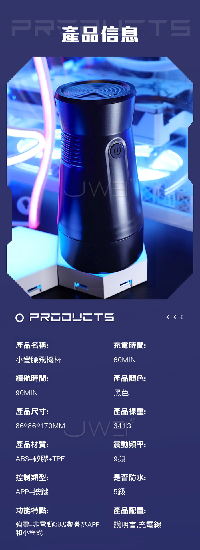 真空夾震,360度環繞舒爽,空氣負壓產生夾縮,真實緊緻包裹 擬真厚肉內膽,越深入越驚喜,軟糯酥麻入魂,此中快樂 無法言語~ 脉衝按摩,9檔震動調節,感受肉感蜜道從淺到深的多重快感 產品規格 ■尺寸:大小詳如圖片標示 ■材質:TPE+ABS ■特點:9頻震動、APP智控