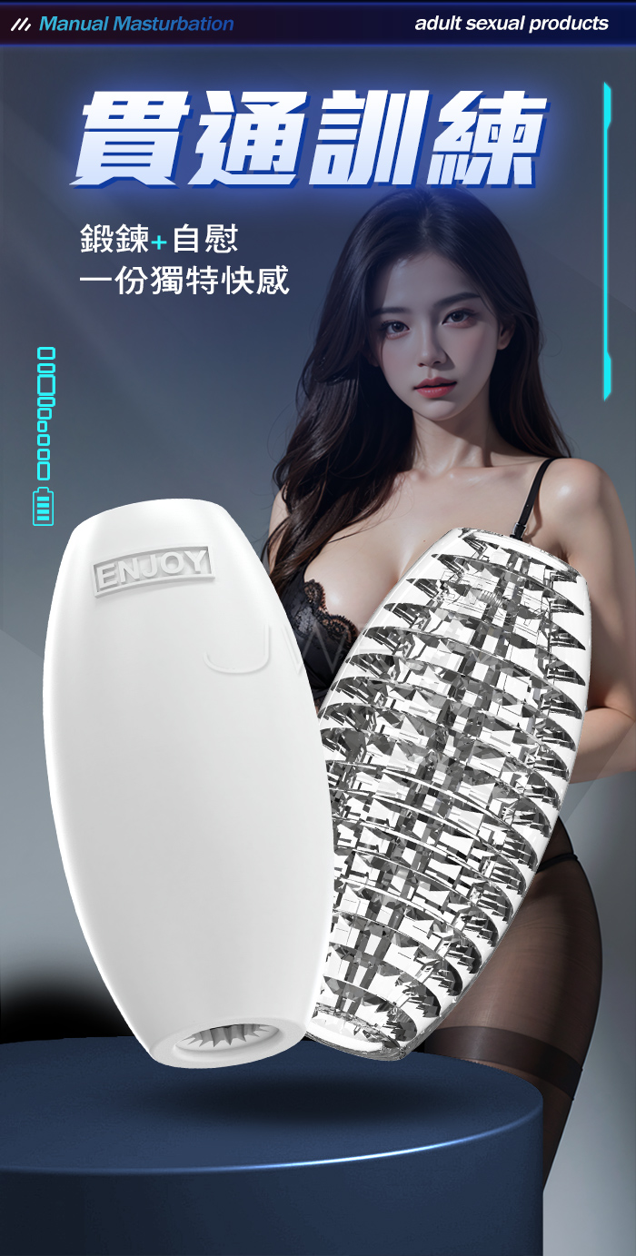 | ENJOY.雙頭貫通 鋸齒狀顆粒剮蹭 持久鍛鍊自慰套【透明】
