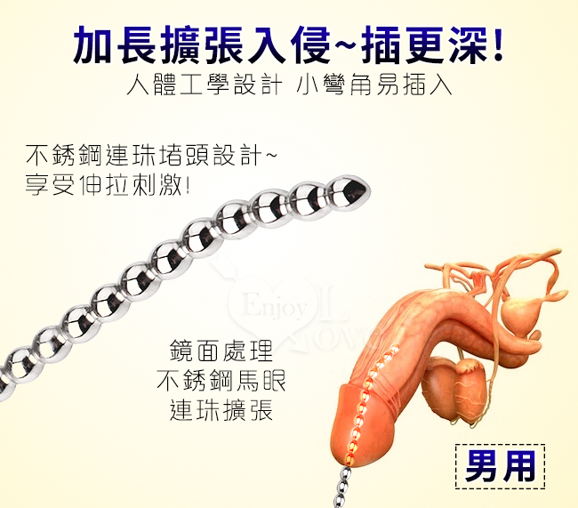 另類玩虐刺激 ‧ 不銹鋼尿道馬眼連珠彎弧 擴張入侵長棒 - 2號﹝直徑0.6公分/全長25公分﹞