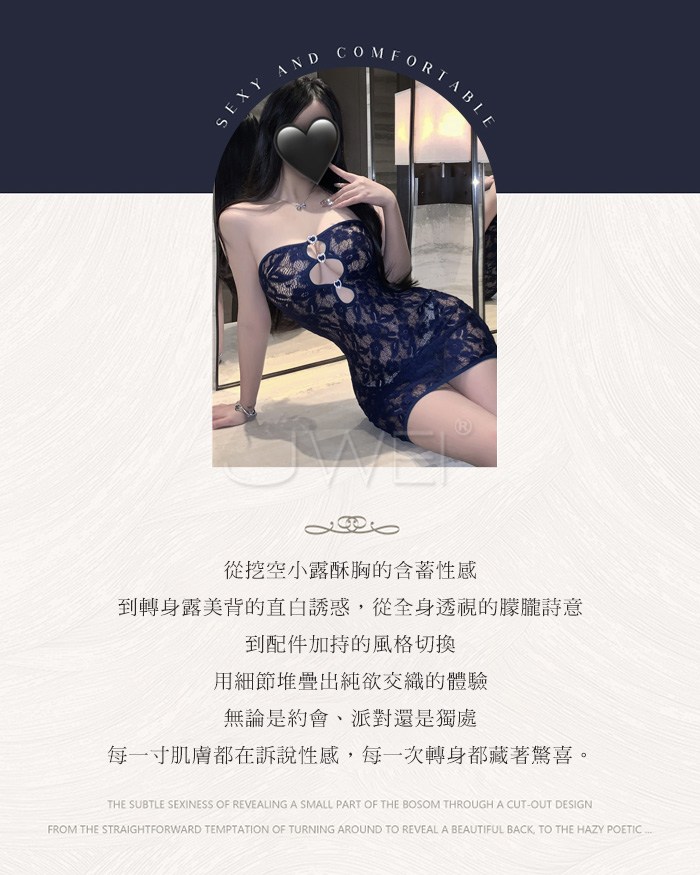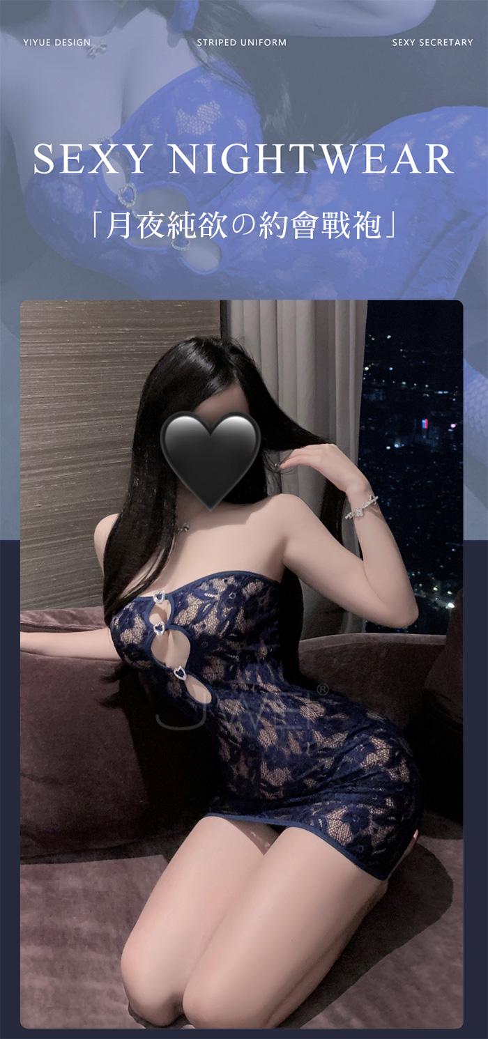 首頁>純欲之花.性感平口挖空露胸花蔓透紗包臀睡裙【包臀裙+T褲-藍色】