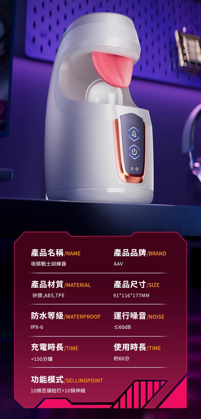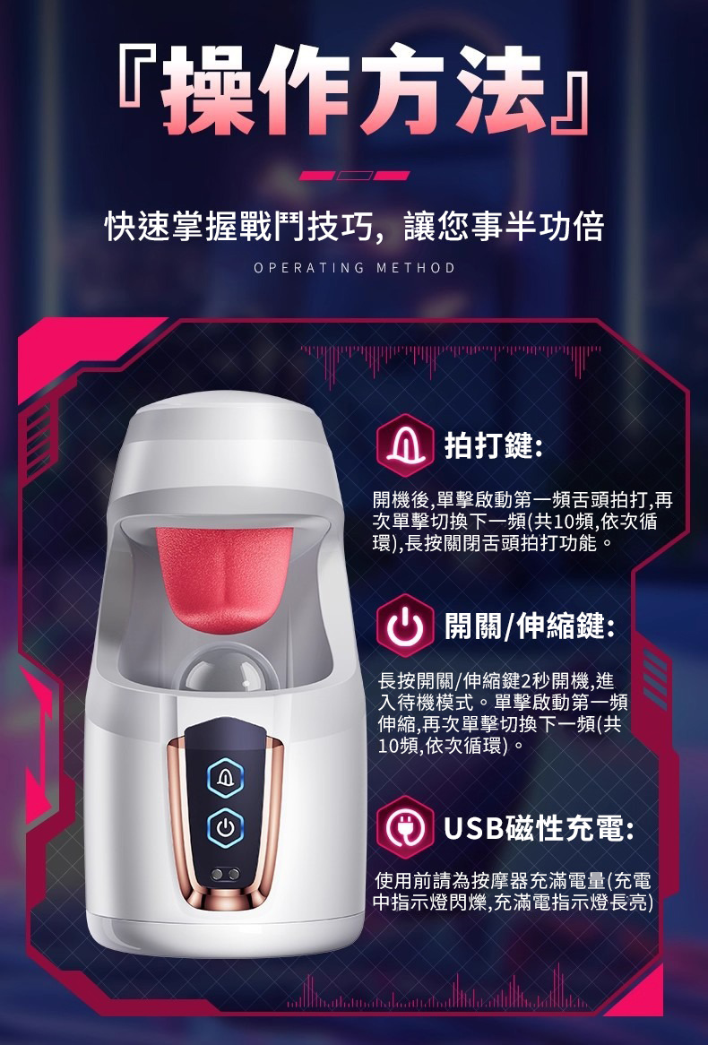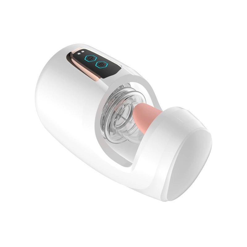 吸精戰士.舌舔拍打10頻震動+伸縮飛機杯 仿生舌舔暴力吸精器(白色)
