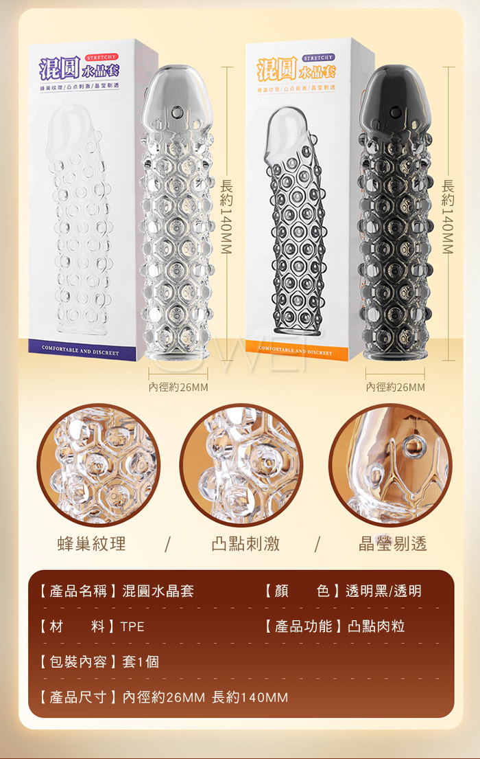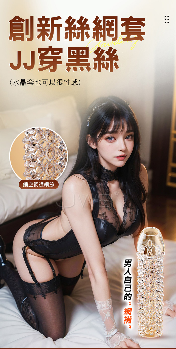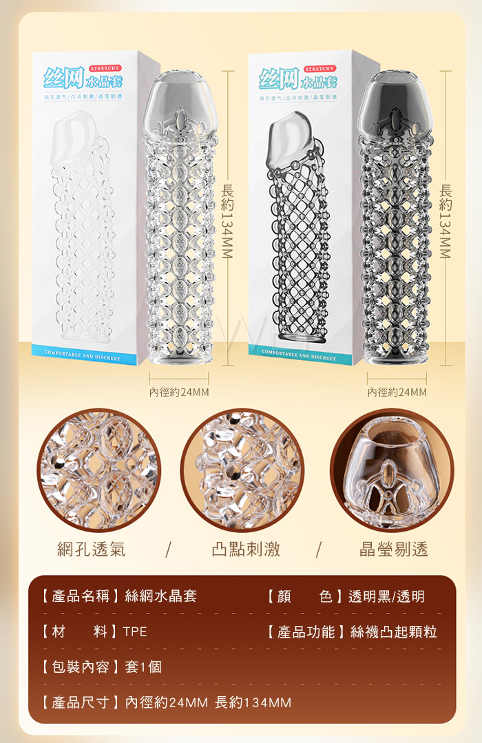 絲網.鏤空網襪凸起顆粒摩擦 加粗開口水晶老二套【透明】