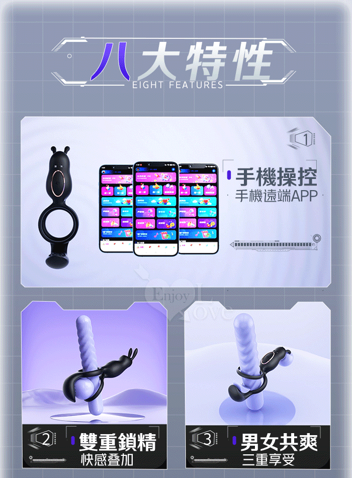 ROSELEX 捷久耐戰男女歡樂套環﹝10頻雙點強震+雙環鎖精緩射+兔撩震陰蒂+尾巴撩震蛋蛋+共震調情﹞可手機APP遙控﹝具兩種操控模式﹞